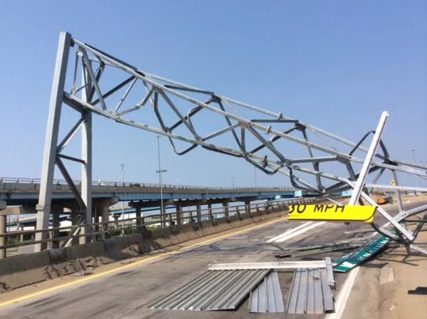 Northbound M-39 ramp to I-96 is closed as dump truck knocks sign down