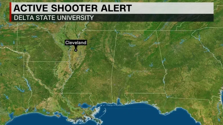A male professor was shot and killed at Mississippi’s Delta State University Monday, according to Bolivar County Deputy Coroner Murray Roark. The victim was in his office at the time of the shooting, Roark said, adding that the shooter remains at large. Delta State, which is in Cleveland, Mississippi, had earlier tweeted that at least one person was killed in a shooting. The school tweeted on its official account that the campus was on lockdown and advised that everyone stay indoors and away from windows.