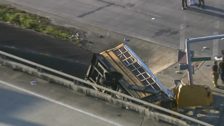 A school bus crashed on the way to a Houston high school. Witnesses tell CNN affiliate KTRK the bus fell from an overpass.