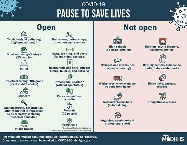 LANSING, December 8, 2020 ~ Governor Gretchen Whitmer announced Monday that the partial lockdown order in place is to be extended through Sunday, December 20. The lockdown was given a 12 day extension after originally being set to end midnight on Tuesday, December 10.
