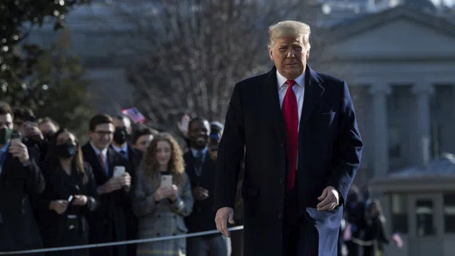 Photo: Brendan Smialowski / Getty ~ President Trump walks by supporters outside the White House Tuesday before his departure to Alamo, Texas.