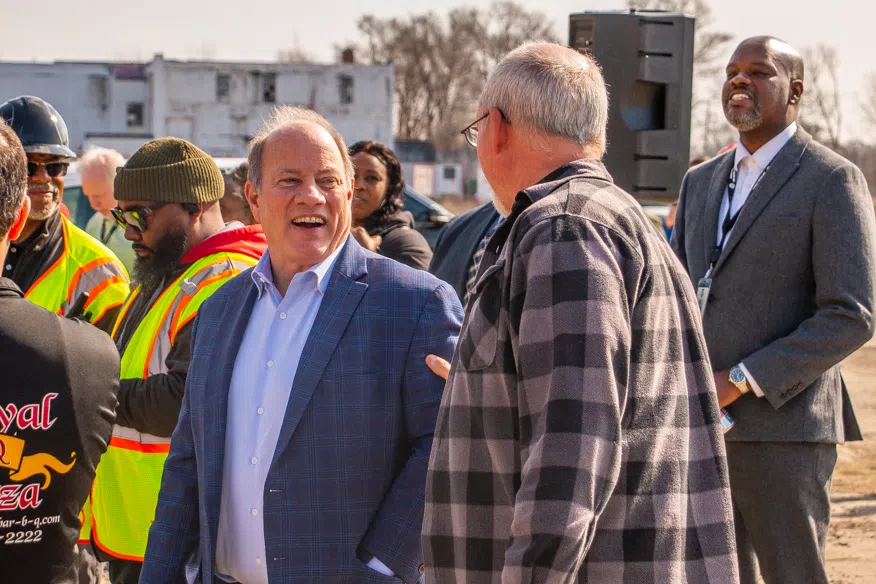 PHOTOS: The next phase of the Packard Plant demolition begins on March 4 in Detroit. Mayor Mike Duggan and City Council President Mary Sheffield gave remarks before the demolition began. (Andrew Mullin ~ 760 WJR)