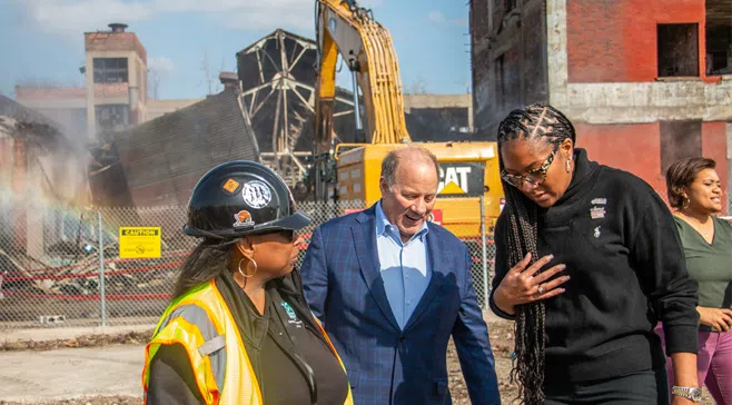 March 4, 2024 ~ The next phase in the demolition of the historic and long-vacant Packard Plant began Monday, continuing efforts to revitalize the area.