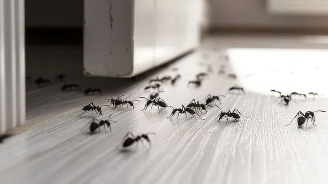 Further investigation uncovered a trail of ants, some coming, some going, that led down the base cabinets, from the kitchen floor, through the great room and out a small gap in the corner baseboard.