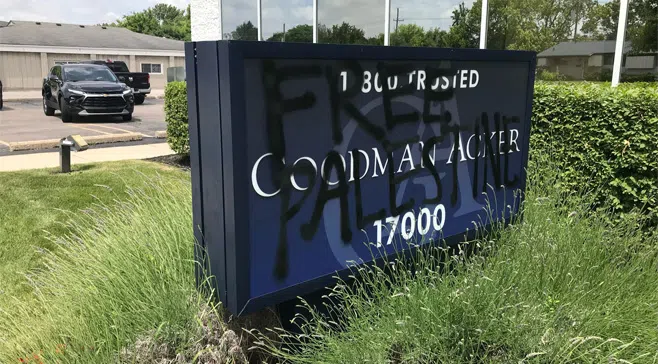 (CONTINUED) At a press conference, Acker said, “Make no mistake, that targeting individual Jewish elected officials is antisemitism,” though other regents have faced protests from student activists, including a recent protest outside the home of regent Sarah Hubbard. In a joint Instagram post from the Tahrir Coalition and Jewish Voice For Peace at the University of Michigan student groups, they applauded the graffiti, rejected that the action was antisemitic, and said, “These escalations pale in comparison to the escalation of military aggression and massacres committed by the Israeli war machine.“