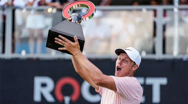 DETROIT, July 1, 2024 ~ In a surprise conclusion to the tournament, Cam Davis won the Rocket Mortgage Classic for a second time after winning at 18-under Sunday.