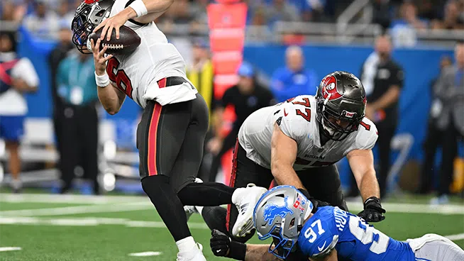DETROIT, September 15, 2024 ~ Despite a 4.5 sack from Detroit Lion defensive end Aidan Hutchinson, the Lions could not overcome six failed opportunities to score within 20 yards of the end zone in a 20-16 loss against the Tampa Bay Buccaneers at Ford Field Sunday afternoon.