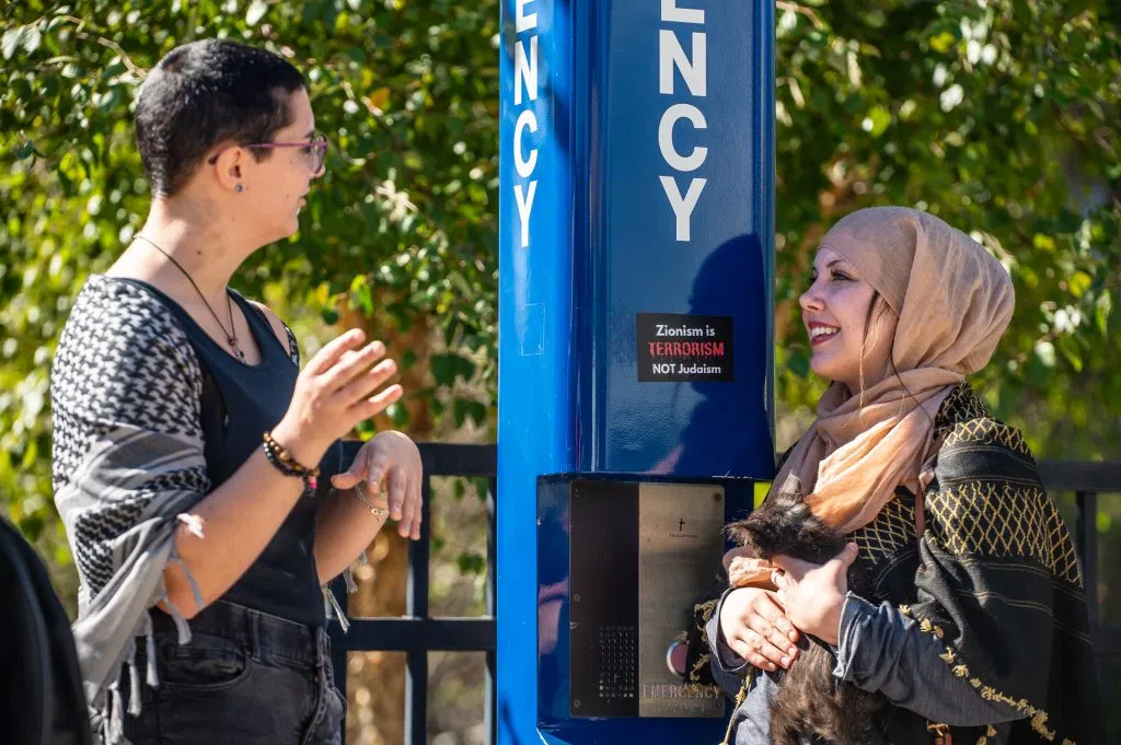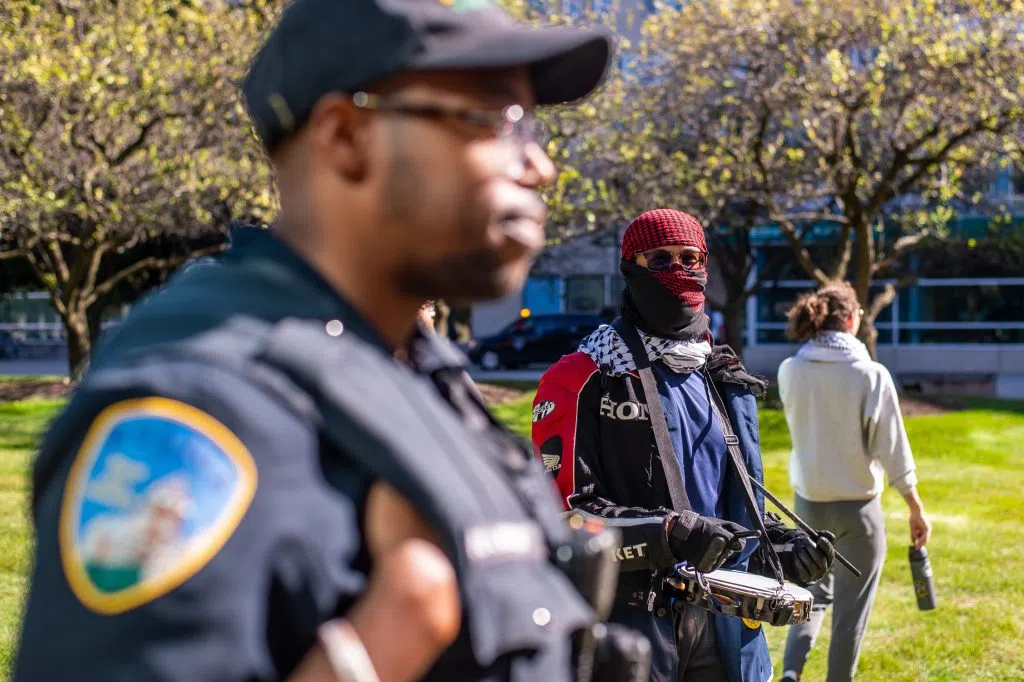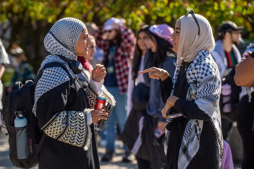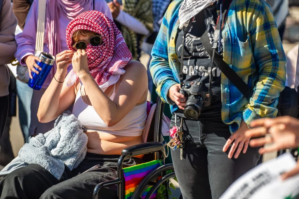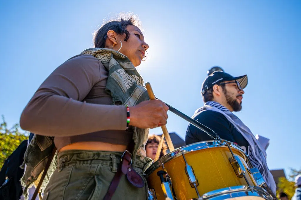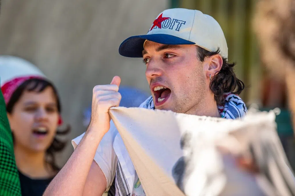DETROIT, Oct. 7, 2024 ~ Hundreds of Michigan college students at Wayne State University and the University of Michigan protest Israel on the one-year mark of its siege and bombardment on Gaza.