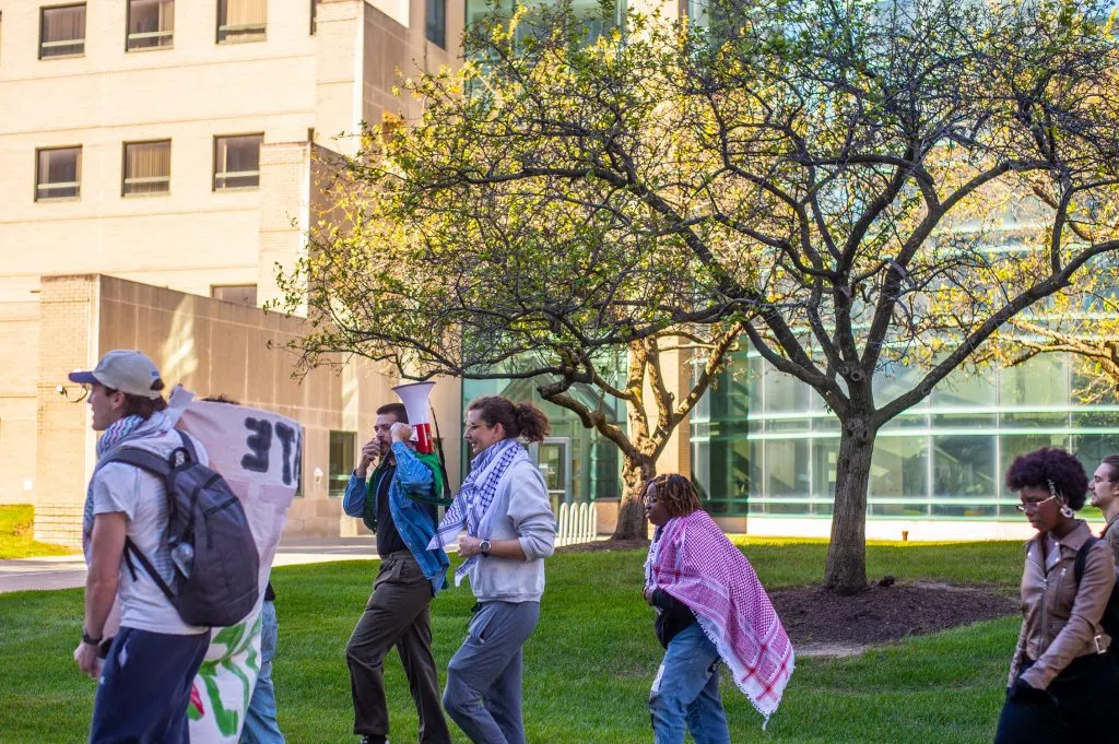 Students performed walkouts on the first anniversary of the Hamas-led attacks on Oct. 7 in Israel after the group broke through the Gaza border walls and took hundreds hostage, with about 1,200 people dying in firefights between Palestinian militants and the Israeli military. Since then, at least 40,000 people have been killed by Israeli actions in Gaza, mostly women and children, with protestors at the walkouts calling it a genocide. Students at U-M and WSU have been calling for their schools to divest university funds from Israel.