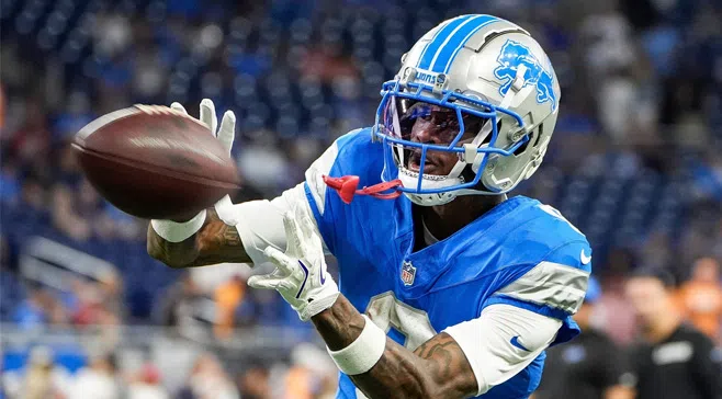 Oct. 30, 2024 ~ Detroit Lions wide receiver Jameson Williams was detained for carrying a gun without a concealed pistols license, and then subsequently released by Detroit police. Guy Gordon and Jamie Edmonds talk with his lawyer, Todd Flood, about how the bodycam footage was released, and the DPD’s investigation into the traffic stop. Photo: Lon Horwedel ~ USA Today Network