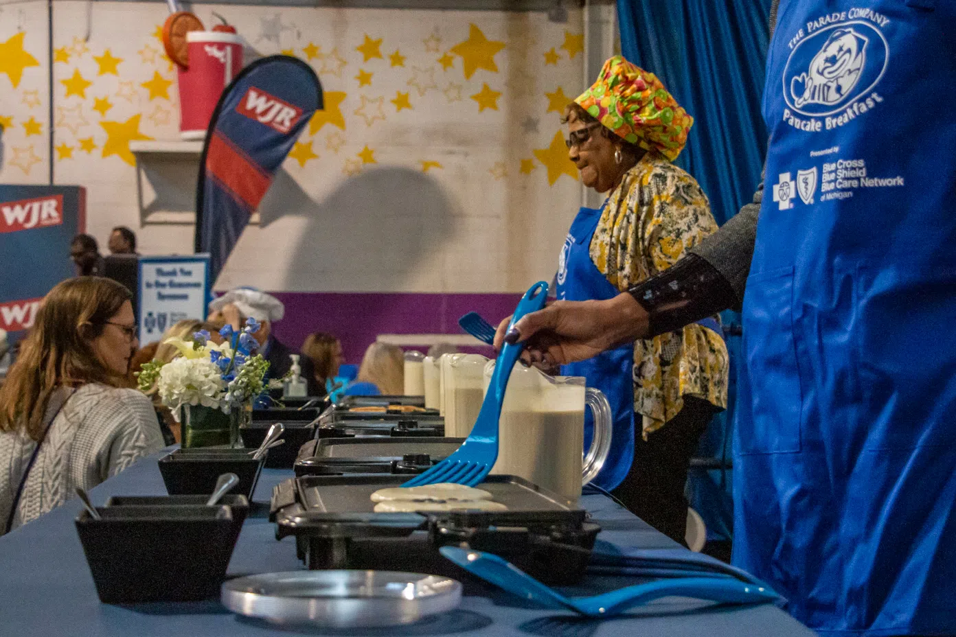 DETROIT, Nov. 8, 2024 ~Hundreds of business and community leaders to much down flapjacks at the 25th annual Parade Company Pancake Breakfast.