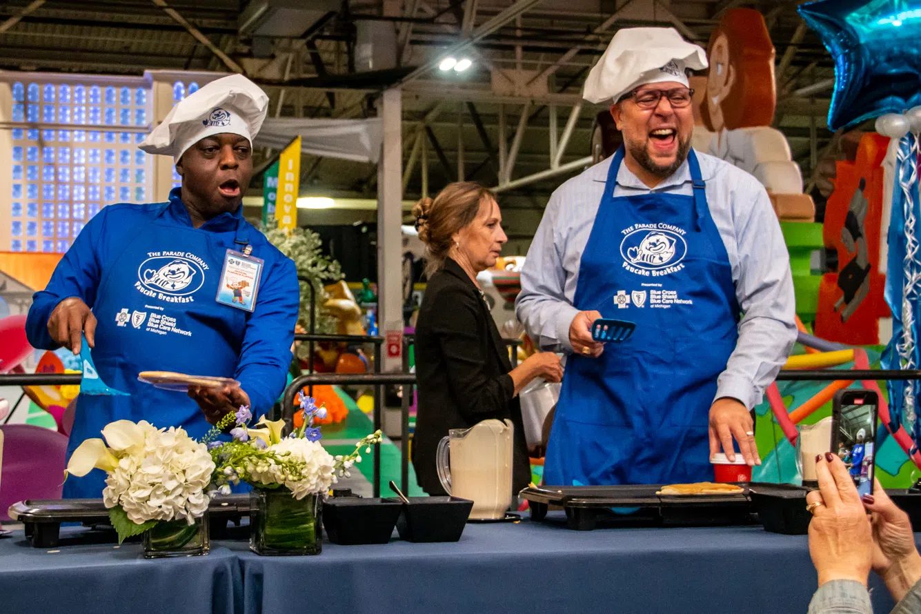 Nov. 8, 2024 ~ Dan Loepp, president and CEO of Blue Cross Blue Shield of Michigan, and Tony Michaels, president and CEO of The Parade Company, join Guy Gordon, Lloyd Jackson, and WDIV‘s Karen Drew at the Parade Company’s Pancake Breakfast.