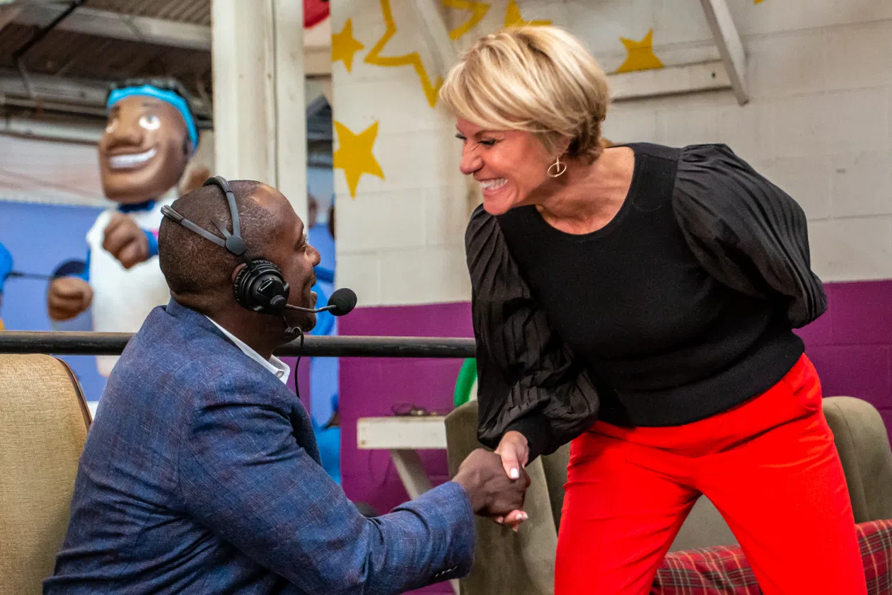 Nov. 8, 2024 ~ Rachel Stewart, CEO of Gardner White, and Tony Michaels, president and CEO of The Parade Company, join Guy Gordon, Lloyd Jackson, and WDIV‘s Karen Drew at the Parade Company’s Pancake Breakfast.