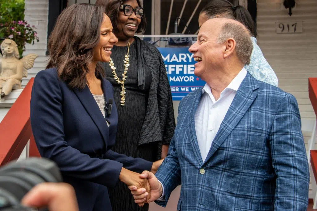 Aug. 21, 2025 ~ Yesterday, Mary Sheffield was endorsed by Mayor Mike Duggan. She reacts to the endorsement with Kevin Dietz.