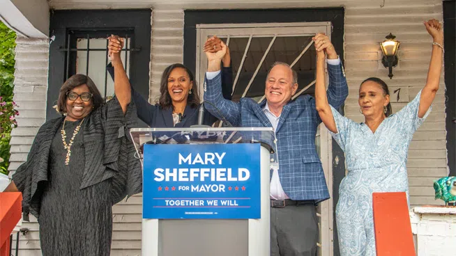 (CONTINUED)”I am humbled to receive the support of our current mayor,” Sheffield said. “His belief and his confidence in me to continue the progress and the momentum of our city, to ensure that the progress that we all have worked so hard for is not only protected, but is accelerated, sustained, and moves forward in a positive direction so that it reaches more people and reaches more neighborhoods.“