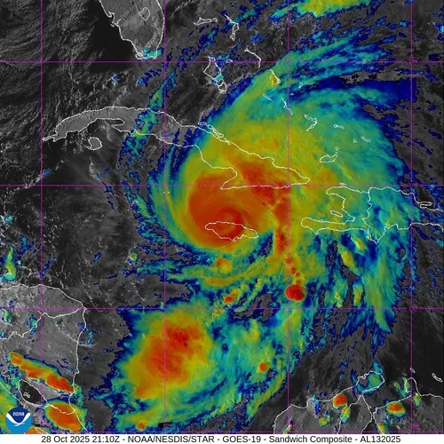 Satellite image of Hurricane Melissa as of 5 p.m., Oct. 28, 2025. Photo: NOAA/STAR ~ USA TODAY NETWORK