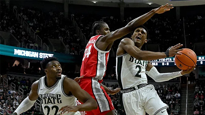 Photo: Dale Young ~ USA TODAY SportsEAST LANSING, MI, Feb. 26, 2024 ~ The Michigan State Spartans lost a heartbreaker to the Ohio State Buckeyes on Sunday, 60-57, at the Breslin Center in East Lansing...