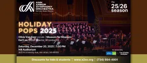 Get ready for a magical evening as the Ann Arbor Symphony Orchestra brings its beloved Holiday Pops concert to Hill Auditorium on Saturday, December 20. Experience a symphony of lights, sights, and sounds featuring festive classics, stunning new arrangements, and joyful audience participation. This year's performance i…